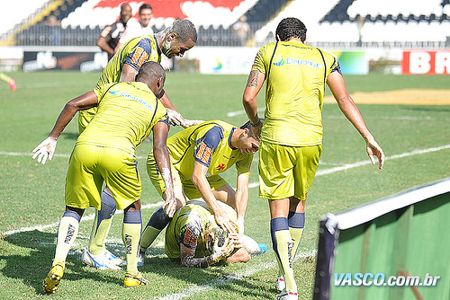 Dedé não ligou para a brincadeira mas não aceitou ser o único alvo dos companheiros. O vascaíno resolveu presentear o prata da casa Allan, pela convocação para a seleção brasileira sub-20 que irá disputar o Mundial entre os dias 29 de julho a 20 de agosto, na Colômbia.