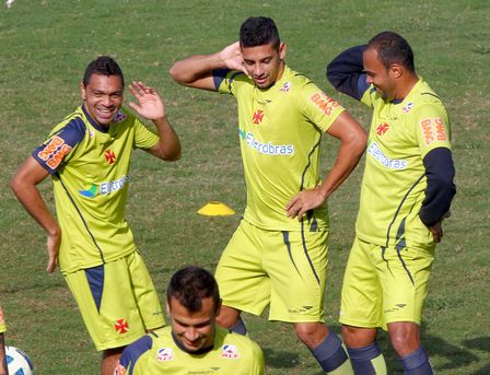 Leandro, Diego Souza e Alecsandro dançaram no treino desta 6ª-feira