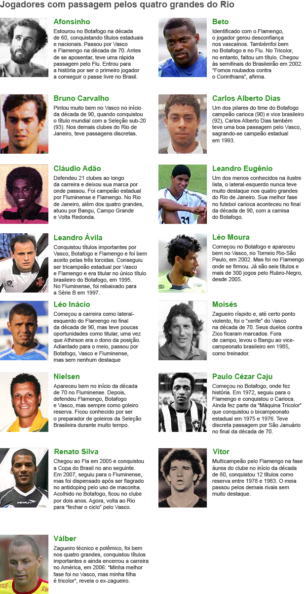 Nas últimas décadas, poucos foram os que vestiram profissionalmente as camisas de Botafogo, Flamengo, Fluminense e Vasco. O último a fechar o ciclo foi o lateral Léo Moura. Após um início de carreira discreto no Botafogo, o atual camisa 2 da Gávea teve boas passagens por Vasco (2002) e Fluminense (2004). Porém, foi no Rubro-Negro que se destacou e conquistou títulos.