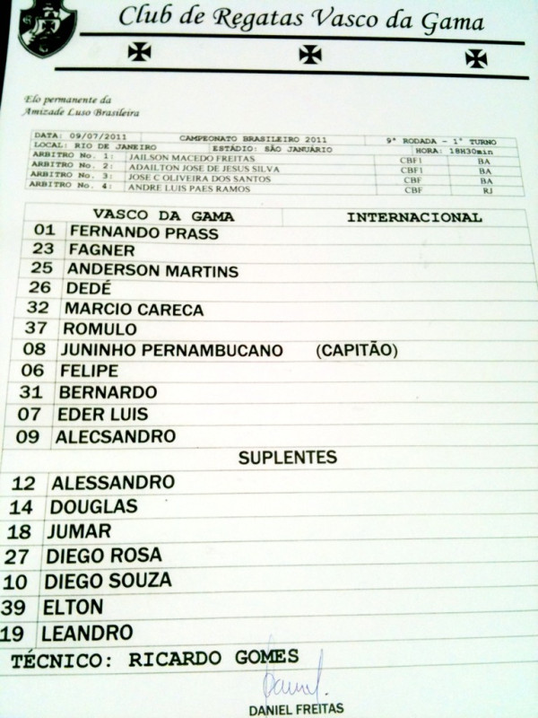Fonte: Twitter do assessor de imprensa do Vasco Vinicius Gonçalves