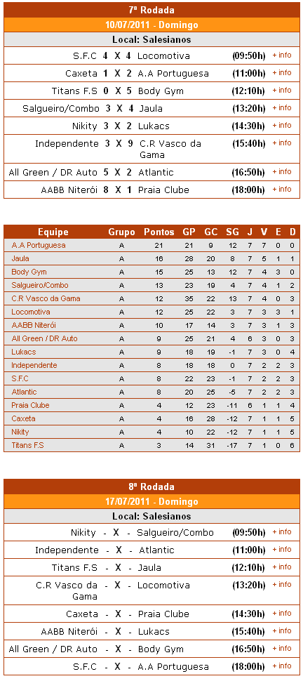 Fonte: NETVASCO (texto), Site da LF7 (tabela, classificação, foto)