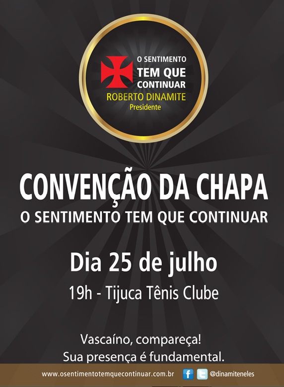 Convenção da chapa de Dinamite será no dia 25/07, às 19h, no Tijuca TC