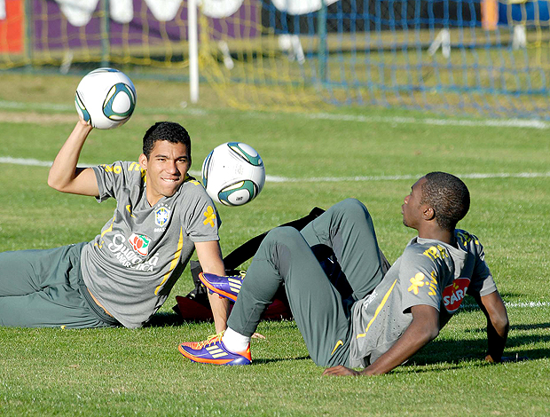 Allan e Negueba brincam em treino da Seleção: primeira viagem com a sub-20