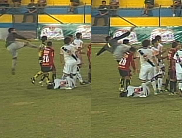 O lance se deu no meio do campo, quando Romário, do Vasco, estava caído no gramado. Um jogador do Sport se aproximou para apressar o vascaíno no chão, e foi empurrado por outros atletas do time carioca. Gustavo, então, saiu correndo de sua meta e deu uma voadora em Elivélton que, de costas, nem sequer viu a aproximação do agressor.