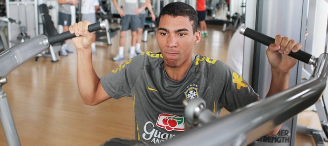 O trabalho realmente começou com tudo na Colômbia. Depois da atividade na academia, os jogadores da Sub-20 foram direto para o campo do Estádio Romelio Martinez, casa do Junior Barranquilla.