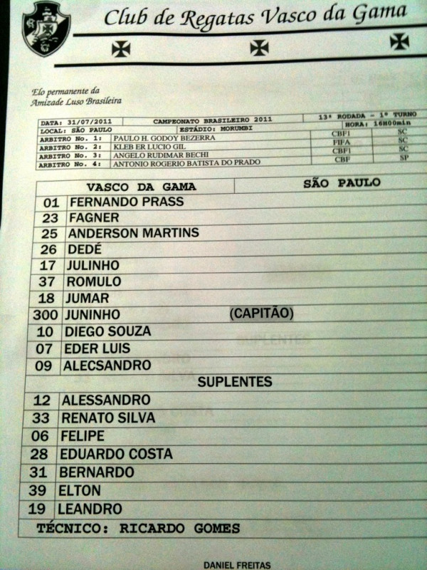 ViniciusCRVG: Uma correção: o goleiro reserva, Alessandro, entra hoje com a camisa 36, e não 12 como está na escalação. Fonte: Twitter do Assessor de Imprensa do Vasco, Vinícius Gonçalves