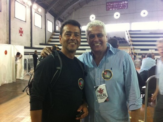 O ator Marcos Palmeira chegou por volta das 13h50 em São Januário para votar na eleição presidencial. Ao chegar, com o adesivo da chapa “O sentimento tem que continuar”, de Roberto Dinamite, foi assediado por alguns sócios. Pouco tempo depois, depositou seu voto e recebeu um abraço do atual presidente e conversou com Olavo Monteiro de Carvalho, presidente da Assembleia Geral do clube. O ex-jogador de vôlei Fernandão, membro da atual diretoria, também recebeu o ator.