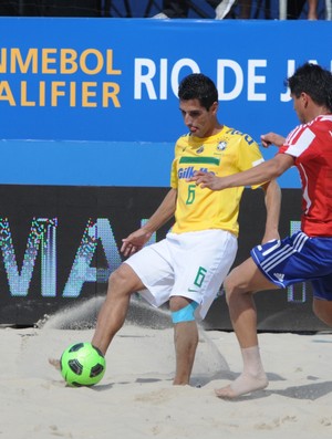 Em dois jogos, 27 gols e belas jogadas. Nas eliminatórias sul-americanas para a Copa do Mundo de futebol de areia, no Rio de Janeiro, o Brasil tem dado espetáculo para a torcida e resgatado um velho hábito: o de aplicar sonoras goleadas nos adversários, com gols de placa. Na estreia contra o Paraguai, vitória por 14 a 1. Depois, um novo show da seleção e 13 a 1 sobre os peruanos.