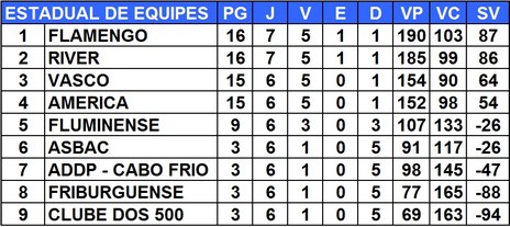 Mesmo sem jogar nesta rodada a ASBAC permaneceu em 6º lugar. A classificação do Estadual ficou assim: