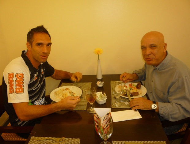 Arthur Prass saboreia o jantar com o filho, o goleiro Fernando