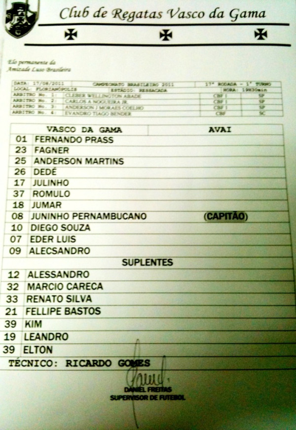 Fonte: Twitter do Assessor de Imprensa do Vasco, Vinicius Gonçalves