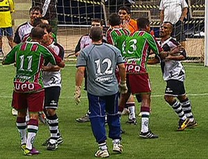Geralmente marcado pelo clima amistoso entre ex-companheiros do futebol, o showbol teve momentos de tensão neste domingo, durante a vitória do Vasco sobre o Fluminense por 6 a 3, pelo Campeonato Brasileiro, em Volta Redonda (RJ). Valendo vaga nas semifinais da competição, o jogo foi pegado, cheio de cartões para ambos os lados, e ficou marcado por uma confusão a pouco mais de sete minutos do fim.