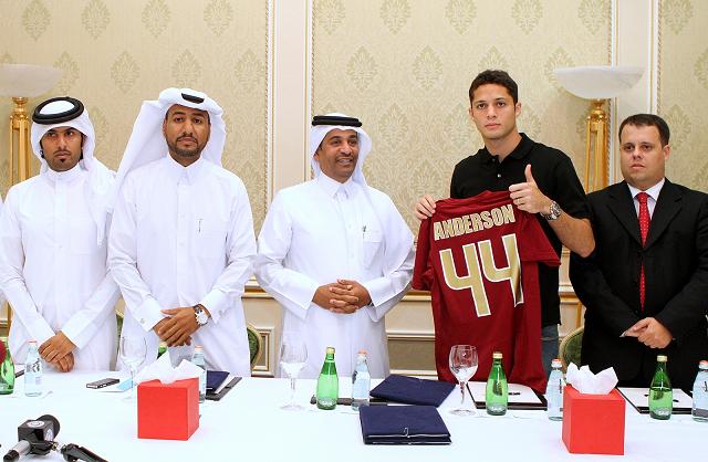 O zagueiro Anderson Martins, ex-Vasco, foi apresentado oficialmente no Al-Jaish, do Catar, hoje (06/09), e assinou um contrato de quatro anos. O brasileiro chegou a Doha ontem (05/09), fez os exames médicos e, nesta tarde, teve uma apresentação de gala no salão nobre do clube, que contou com a presença de toda diretoria. Logo em seguida, o zagueiro se apresentou ao técnico Péricles Chamusca e já fez o seu primeiro treino com os novos companheiros no complexo Aspire, centro de excelência de treinamento destinado às seleções do país. O Al-Jaish está concentrado no local para se preparar para a disputa da Liga Nacional, que começará no próximo dia 18.