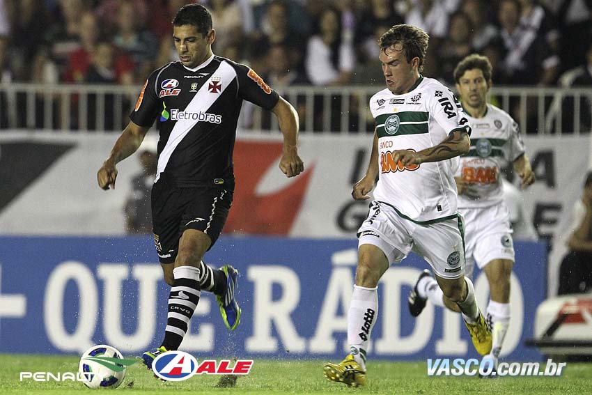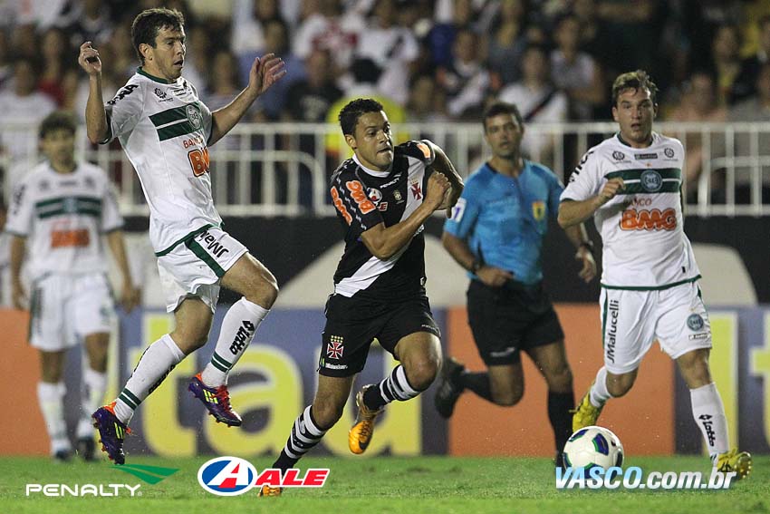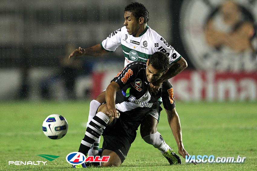 O jogo lembrava muito a primeira partida da final da Copa do Brasil. O Vasco, até por causa da responsabilidade de atacar, não conseguia se organizar em campo. Torto, atacava somente com Eder Luis e Fagner pelo lado direito. O Coritiba sim era mais perigoso e até o ídolo vascaíno Dedé, que voltava ao time nesta noite de quinta-feira, foi driblado em um dos ataques do Coxa. Foi, inclusive, dos visitantes o primeiro lance de perigo com Pereira, desviando falta cobrada por Tcheco.