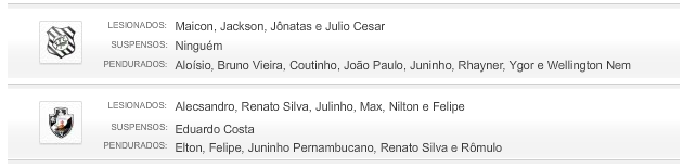 Confira os lesionados, suspensos e pendurados de Figueirense e Vasco