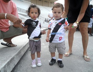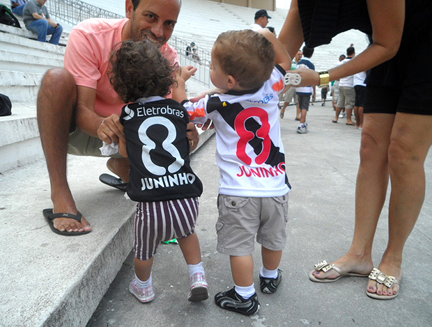 Com uma ajudinha dos pais, a paixão pelo Vasco vem sendo cultivada nos irmãos Alexandre e Valentina. Ainda sem entender muito bem o que se passa, a pequena dupla foi ao treino do time, neste sábado, em São Januário, vestindo a camisa do ídolo que rege a idolatria: Juninho Pernambucano.