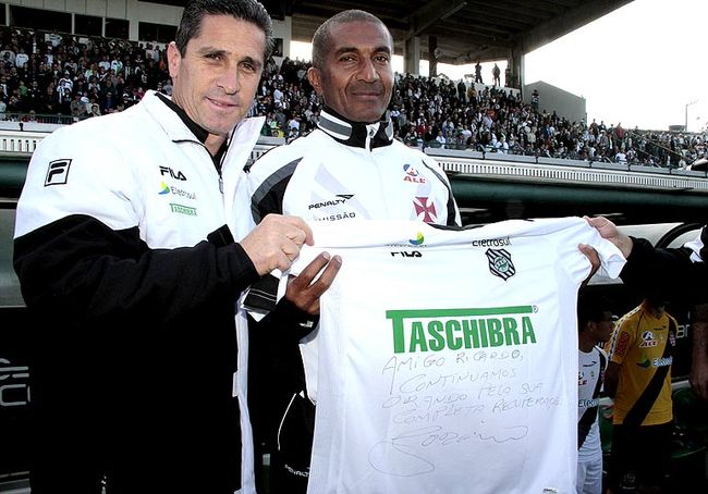 Amigo dos tempos em que ambos defendiam a Seleção Brasileira, Jorginho entregou a Cristóvão Borges, técnico interino do Vasco, uma camisa assinada pelos jogadores do Figueirense com uma mensagem de apoio a Ricardo Gomes.