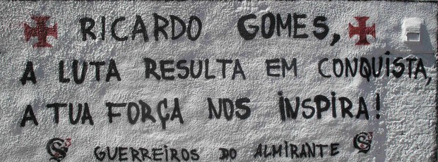 A aproximadamente 72 horas de receber alta após 20 dias internado em função de um AVC (acidente vascular cerebral), o técnico Ricardo Gomes segue recebendo homenagens e mensagens de apoio vindo de todos os cantos. A última delas foi feita bem em frente ao Hospital Pasteur, na Zona Norte do Rio de Janeiro, onde ele se encontra. Cinco torcedores vascaínos pintaram um grafite na madrugada deste sábado para homenagear o comandante.