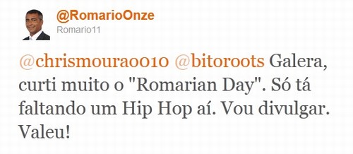 Romário já se manifestou em seu perfil no Twitter sobre o evento. E ele curtiu.