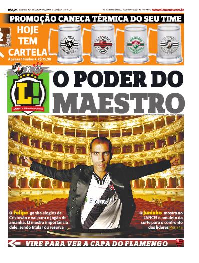 E ele demonstra confiança em fazer da campanha vascaína uma bela sinfonia, pois já tem sido raro ver a equipe desafinando. Na ponta da tabela, mais do que nunca, é de se esperar que o Vasco dê o tom na reta final do Brasileiro, sob a batuta de Felipe.