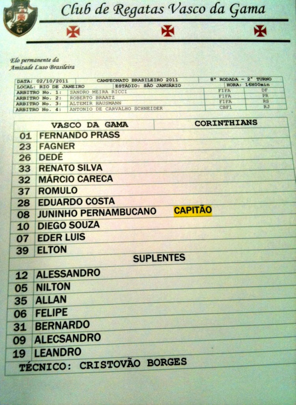 02/10 Confira comparativo entre cada titular de Vasco e Corinthians