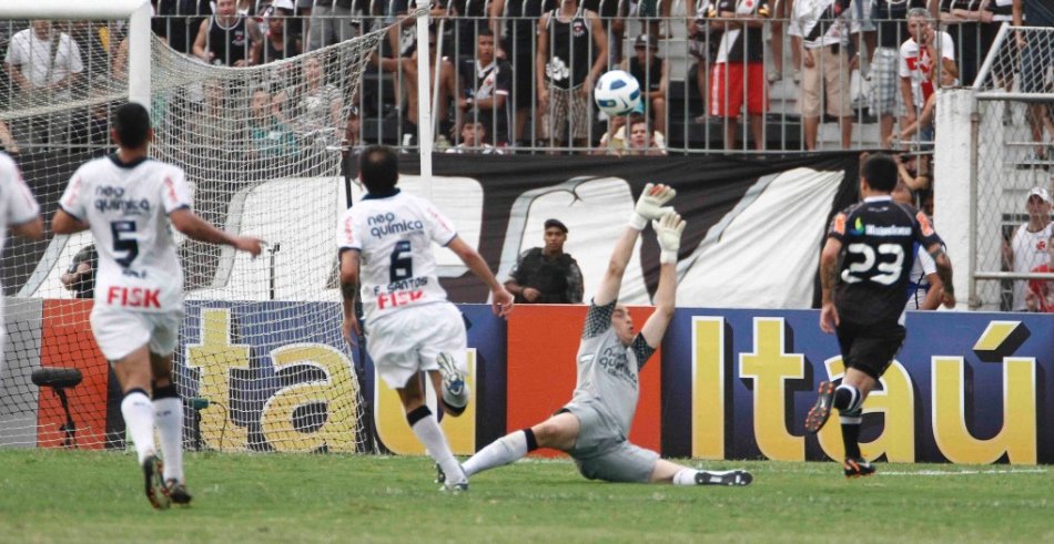 Aos dez, Leandro Castán cabeceou até acertou o pé da trave, mas o zagueiro estava impedido e a jogada foi interrompida acertadamente.