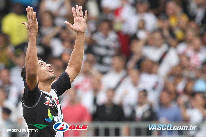 Em outra bola aérea, aos 15, o Vasco abriu o placar. Juninho cobrou escanteio da direita, Dedé subiu no meio da área e cabeceou por cima de Julio César. A bola bateu no travessão antes de entrar. Foi o quarto gol do zagueiro no Brasileirão.