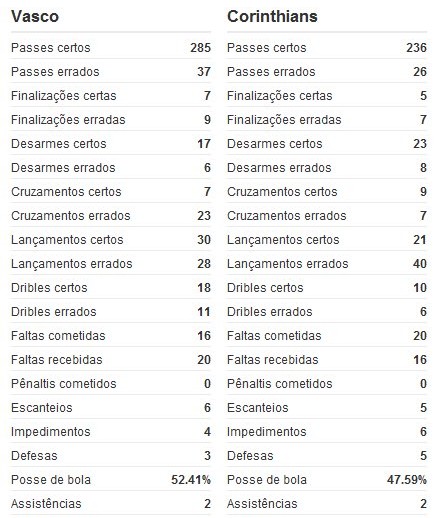 ![]() Estatisticas de Vasco 2x2 Corinthians | ![]() Estatisticas de Vasco 2x2 Corinthians | ![]() Estatisticas de Vasco 2x2 Corinthians |