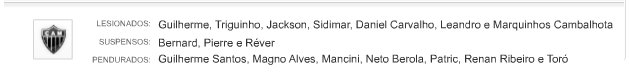 Confira lesionados, suspensos e pendurados de Vasco e Atlético-MG
