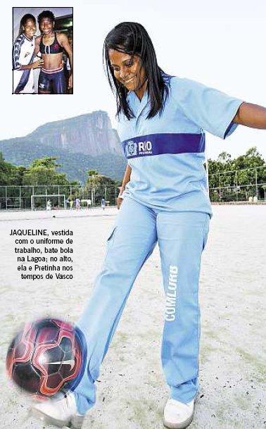 JAQUELINE FELIZARDO, 33 anos, é funcionária da Comlurb, e assim como o gari Renato Sorriso é craque no samba, ela é o destaque da companhia quando o assunto é futebol. Bate um bolão. Flamenguista, é ex-atacante do Vasco — defendeu o time entre 1997 e 2002 — e chegou a jogar com Marta e Pretinha. Foi campeã paulista pela Portuguesa. Uma torção no tornozelo tirou Jaqueline dos campos e atualmente ela sai de Realengo rumo ao Leblon para ralar na limpeza do Hospital Miguel Couto. “Falta o mínimo de incentivo para o futebol feminino”, critica. “Mulher não quer ficar rica jogando bola, ela só quer ter uma vida decente.”