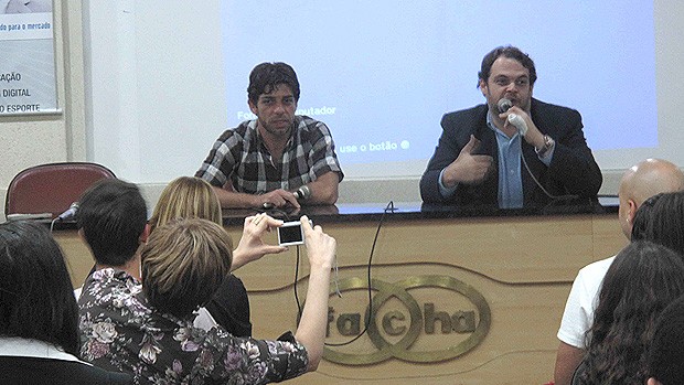 Após treinar na manhã desta quinta-feira em São Januário, o meia Juninho Pernambucano mudou de palco e participou, à noite, de uma palestra sobre assessoria de imprensa e novas mídias para alunos de pós-graduação da Faculdades Integradas Hélio Alonso (Facha), em Botafogo, na zona sul do Rio de Janeiro. Durante cerca de duas horas, o Reizinho respondeu a sabatina de perguntas dos cerca de 120 alunos.