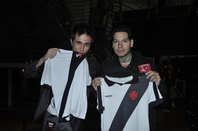 Bom dia, sou produtor musical do Rio de Janeiro e ontem trouxe ao Circo Voador direto dos USA a banda MXPX, um ícone do Punk rock e hardcore mundial (fizeram músicas pro jogos de vídeo game de sk8 do Tony Hawk e a trilha do filme do scooby doo). Dei a camisa do Vasco a ele e tiramos uma foto juntos, os 2 c/ a camisa na mão.