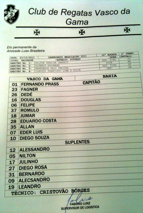 Fonte: Twitter do assessor de imprensa do Vasco Vinicius Gonçalves