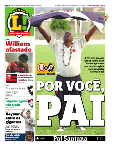 Capa do diário Lance! de 02/11/2011 homenageando o Pai Santana