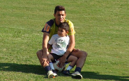 O atacante Eder Luis teve uma companhia agradável no treino desta terça. Filho do camisa 7, Davi, de dois anos, esteve no gramado fazendo companhia ao pai e ainda bateu uma bola com alguns companheiros do papai. Canhoto, o garoto não cansou de chutar as bolas que chegavam.