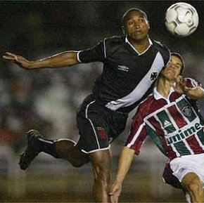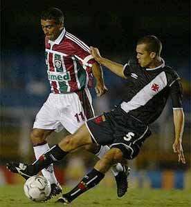 livre entre os zagueiros do Vasco, mas o atacante do Flu tentou