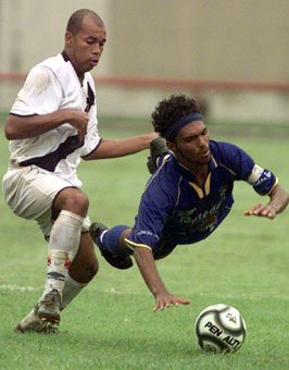 Netvasco - 22/01 - 20:00 - Prejudicado pelo juiz, Vasco perde: S. André 2 a 0 Um jogador injustamente expulso e um gol - o primeiro - irregular do Santo André marcaram a derrota do Vasco por 2 x 0, na noite desta quarta-feira, no Estádio Bruno José Daniel, em Santo André, pela semifinal da Copa São Paulo de Juniores. Com o resultado, o time carioca foi eliminado da competição e enfrenta a Internacional de Limeira na decisão do 3º lugar às 8h30min de sábado. A final será disputada entre Palmeiras e o time do ABC Paulista, também no sábado, às 11h, no Pacaembu. O primeiro tempo foi truncado, com poucas chances de gol. A primeira oportunidade aconteceu aos 10min, quando o lateral-esquerdo Diego fez boa jogada pelo seu setor e cruzou para Léo Macaé, que furou no momento da finalização. O Santo André reagiu aos 17min com o atacante Nunes sendo desarmado na grande área pela zaga vascaína. O jogo ganhou novas cores aos 35min, quando o Vasco ficou com um jogador a menos, devido à expulsão injusta do lateral Bruno Leite (por dois cartões amarelos). O jogador havia sido advertido com cartão um pouco antes, num lance em que ele, curiosamente, sofreu falta e não cometeu, numa falha grosseira do juiz Antônio Rogério do Prado. Logo depois, Nunes aproveitou cruzamento da esquerda feito por Richarlysson e cabeceou com perigo. Aos 39min, o mesmo Richarlysson chutou cruzado, de fora da área, e o goleiro Borges espalmou para escanteio. Irritado com o desempenho da arbitragem, Léo Macaé, destaque do Vasco, parecia desequilibrado e quase também foi expulso de campo. Mesmo com um jogador a menos, o Vasco retornou um pouco melhor para o segundo tempo, tocando a bola no setor de meio-campo. Aos poucos, no entanto, o Santo André foi equilibrando e aos 13min fez um gol irregular, validado pela arbitragem: Tácio, impedido, aproveitou passe de cabeça feito por Leandro e abriu o placar para o time da casa. Sentindo que o palco estava montado para a vitória do Santo André, o time do Vasco demonstrava nervosismo em campo. O resultado foi a expulsão de Léo Macaé e Leandro, após disputa de bola. Tirando proveito na situação, Denni, aos 20min, chutou cruzado com categoria, no canto esquerdo, para fazer Santo André 2 x 0. O Vasco ainda teve Wescley expulso, dessa vez com justiça, e, desarticulado, não teve força para reagir e empatar o jogo, o que provocaria uma prorrogação. O Santo André, por sua vez, fez a bola correr até o apito final, arriscando o terceiro gol em jogadas isoladas. GALERIA: Léo Macaé |