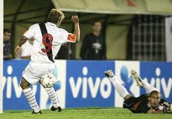 derrota Vitória em São Januário: 3 a 1 O time de São Januário, que não havia vencido nenhum jogo em seu campo no Brasileirão, começou o jogo pressionando o time baiano. Mas foi o Vitória que teve a primeira chance de marcar. Aos três minutos, Pedro cruzou da direita, Marcelo Heleno chutou e Márcio conseguiu defender. Três minutos depois, Diego avançou com a bola dominada pela esquerda, driblou dois marcadores e chutou forte. O goleiro Juninho se esticou todo e conseguiu fazer boa defesa. Aos nove, Petkovic cruzou na área, mas Henrique cabeceou por cima do gol de Juninho. Aos 16 minutos, Obina foi derrubado por Henrique na área. O próprio atacante baiano bateu o pênalti com categoria e marcou o primeiro gol do Vitória. Mesmo com o gol do adversário, o Vasco continuava melhor. Aos 24, Alex Alves fez boa jogada, avançou pela direita e cruzou para Valdir na área. O Bigode dominou mas, ao invés de chutar, tocou para Petkovic no meio, facilitando o trabalho da zaga baiana. Aos 27, Chiquinho cruzou da direita, mas Valdir cabeceou para fora a chance do empate cruzmaltino. No entanto, aos 32 minutos, o lateral-esquerdo Paulo Rodrigues derrubou Valdir na área. Petkovic bateu com categoria e empatou o jogo. O Vitória voltou para a segunda etapa disposto a desempatar. Logo no primeiro minuto Pedro chutou de longe e Márcio colocou para escanteio. Dois minutos depois Diego tocou no meio para Valdir, que driblou um zagueiro e chutou forte. Mas o goleiro Juninho, no susto, conseguiu defender, colocando a bola para escanteio. Aos 10, Diego foi à linha de fundo e cruzou na área para Valdir, que cabeceou à direita do gol de Juninho, perdendo mais uma boa chance. O troco do time baiano veio dois minutos depois, quando Xavier tentou chute de longe e Márcio colocou para escanteio. Aos 16 minutos Alex Alves cruzou da direita, Valdir cabeceou e Juninho fez grande defesa. Seis minutos depois Geninho tirou o atacante baiano para colocar o jovem Muriqui. Logo no seu primeiro lance, o jogador deu dois dribles desconcertantes pela direita e sofreu falta violenta de Nenê, que foi merecidamente expulso. Aos 28 minutos, Petkovic lançou Muriqui pela direita. O atacante chutou, o goleiro Juninho conseguiu fazer a defesa e o zagueiro Henrique, como um autentico centroavante, completou para o gol. Dois minutos depois Valdir perdeu outra chance de ampliar depois de roubar a bola da zaga, avançar, driblar o goleiro e chutar para fora. Quando parecia que o Vasco estava satisfeito com o resultado, aos 46 minutos, Canhoto roubou a bola de Pedro, fez boa jogada pela esquerda e descobriu Petkovic livre na área. O meia, que mais uma vez teve grande atuação, rolou para Muriqui, que apenas teve o trabalho de empurrar para as redes, fazendo o gol que selou a vitória vascaína. GALERIA: