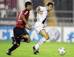 VASCO 3 x 1 VITÓRIA Data - Hora: 06/07 - 20h30 Gols: 16'/1ºT Obina (0x1); 34'/1ºT Petkovic (1x1); 28'/2ºT Henrique (2x1); 46'/2ºT Muriqui (3x1) Cartões amarelos: Henrique, Alex Alves, Ygor (VAS); Xavier, Nenê, Marcelo Heleno, Vinícius (VIT) Cartão vermelho: Nenê (VIT) VASCO: Márcio, Chiquinho, Wescley, Henrique e Diego (39'/2ºT Canhoto); Ygor, Coutinho, Róbson Luiz (32'/2ºT Rodrigo Souto) e Petkovic; Valdir e Alex Alves (22'/2ºT Muriqui) Técnico: Geninho. VITÓRIA: Juninho, Pedro, Marcelo Heleno, Nenê e Paulo Rodrigues; Vinícius, Xavier, Arivelton e Cléber (25'/2ºT Alex Silva); Leonardo (38'/2ºT Magnum) e Obina (30'/1ºT Marcelo Silva). Técnico: Oswaldo de Oliveira. Fonte: Lancenet (texto e ficha), O Globo on line (fotos), O Dia (foto), Jornal dos Sports (foto) |
