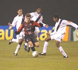 perde para Atlético-PR em Curitiba: 2 a 0 Na próxima rodada, o Vasco enfrenta o Santos, em São Januário. Já o Atlético-PR pega o Botafogo, no Caio Martins. A equipe paranaense começou em cima do time da Colina, criando mais lances de perigo. O Vasco lpouco tocava na bola. E, logo com dois minutos de jogo, o Atlético criou o primeiro lance de perigo. Marcão cobrou falta de longe, para boa defesa de Fábio. O Vasco só assustou aos 11 minutos, com Anderson. O atacante cruzmaltino fez boa jogada pela direita, deu um corte no zagueiro adversário, e chutou. Diego salvou com a ponta dos dedos. A equipe atleticana criava os principais lances de perigo pelas laterais. A defesa vascaína não fazia boa partida e não conseguia penetrar na área do time paranaense, que atuava com três zagueiros (Fabiano, Rogério Correia e Marcão). Aos 13 minutos, o Atlético-PR abriu o marcador. Jadson fez boa jogada pelo meio, Daniel e Fábio não cortaram, o meia paranaense aproveitou e tocou para o fundo do gol. Atlético-PR 1 x 0 Vasco. O time paranaense seguia melhor em campo. O Vasco havia criado apenas uma jogada perigo (chute de Anderson) Aos 25, quase o time paranaense fez o segundo gol. Jadson, que era o melhor jogador no primeiro tempo, cobrou falta no meio da área do Vasco. Marcão, livre, cabeceou rente à trave. Dois minutos depois, mais um lance de perigo para o time do técnico Levir Culpi. Jadson fez excelente pela esquerda, passou pelo volante e Silva e cruzou na área para Fernandinho, que pegou de primeira. A bola passou por cima do goleiro Fábio. A partir daí, o Vasco começou criar mais lances de perigo, a ter mais presença no campo do Atlético-PR. Aos 31, Petkovic cobrou falta da intermediária. A bola passou, com perigo, por cima do goleiro Diego Aos 37, o Atlético perdeu excelente oportunidade de ampliar o marcador. Washington recebeu livre na grande área do Vasco, deu um corte no goleiro Fábio, mas, na seqüência, foi desarmado pelo camisa 1 cruzmaltino. No final da primeira etapa o volante Coutinho, do Vasco, fez boa jogada pela esquerda, passou pelo zagueiro Pingo e arriscou o chute. A bola passou, com perigo, rente à trave esquerda. O Vasco voltou para o segundo tempo, melhor em campo, marcando em cima do Atlético-PR. Aos quatro minutos, teve boa chance com o sérvio Petkovic. O meia cobrou falta da intermediária. Lauro fez grande defesa. Aos 17, mais uma chance para o time da Colina. Na ponta-esquerda, o lateral Diego, do Vasco, arriscou o chute, para boa defesa do xará paranaense. O Vasco era melhor em campo, dominando as jogadas de perigo. Entretanto, não arriscava chutes a gol. O Atlético-PR só voltou a assustar aos 23 minutos. Dagoberto cobrou falta, da ponta esquerda, para o meio da área do Vasco, Fabiano resvalou e a bola sobrou para Washington, que tocou de cabeça, para excelente defesa de Fábio. N final do segundo tempo, o técnico Geninho colocou o lateral-direito Chiquinho e o atacante André Lima no lugar de Diego e Silva, respectivamente. As modificações, entretanto, não surtiram efeito Aos 42 minutos, a equipe paranaense fez o segundo gol. Dagoberto recebeu livre na intermediária, avançou e chutou na saída do goleiro Fábio. GALERIA:
