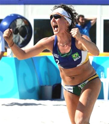 Sandra, garantindo seu lugar nas semifinais do torneio de vôlei