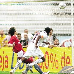 logo aos 4min. Gomes recebeu de Muriqui e chutou rasteiro, para