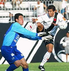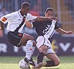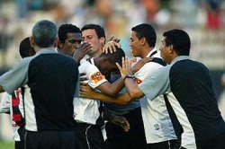 empata com a Ponte Preta em casa: 2 a 2 O pontinho somado levou o Vasco aos 49 pontos, mantendo-se na 15ª colocação no Brasileiro. Na próxima rodada, o time encara o Cruzeiro, no Mineirão. A Ponte, por sua vez, deixou escapar ótima chance de se distanciar do Fluminense, na briga pela última vaga na Copa Sul-Americana. Com 57 pontos, o time de Campinas segue na nona colocação, a última que dá direito a participar da edição 2005 da competição continental. Na próxima rodada, a Macaca recebe o São Caetano, no Moisés Lucarelli. O forte calor, de 40 graus, castigou as duas equipes e fez com que o ritmo inicial da partida fosse lento. O Vasco tocava a bola com tranqüilidade e a impressão era de que o time esperava o sol baixar para aumentar o ritmo. Só que com apenas sete minutos, o time cruzmaltino sofreu sua primeira baixa: Róbson Luiz machucou o joelho direito e teve de ser substituído, dando lugar a Rubens. Ao perder um de seus principais jogadores, o Vasco ficou um pouco desarticulado e acabou sofrendo um golpe ainda mais duro: aos 20 minutos, Júlio César deu um belo passe para Anselmo, que entrou livre na área vascaína e fuzilou o goleiro Cássio, fazendo Ponte Preta 1 x 0. Apesar da desvantagem, o Vasco continuou em ritmo lento. Aos 25, mais uma susto: Petkovic começou a sentir dores na coxa direita e mancava visivelmente. Para piorar, o time bobeou novamente e acabou levando o segundo gol aos 32 minutos. O atacante Alecsandro acertou o ângulo de Cássio, que ainda saltou, mas não alcançou a bola: Ponte 2 x 0. Só então o Vasco resolveu acordar em campo. Coutinho e Petkovic conseguiram dois bons chutes, mas ambos passaram rapsando a trave direita de Lauro. Para o segundo tempo, Pet não conseguiu suportar as dores e foi substituído no intervalo pelo jovem Gustavo. Além dele, André Lima também entrou, só que no lugar de Anderson. E logo no primeiro minuto, um sopro de esperança: Diego cruzou da esquerda e Ygor tocou da cabeça, antecipando-se à zaga e diminuindo o placar para 2 x 1. A partir daí, quem parou em campo foi a Ponte, que recuou excessivamente e pouco explorava os contra-ataques. Mesmo sem seus dois principais jogadores, o Vasco foi para cima, com coragem, comandado por Coutinho, que teve boa atuação. No entanto, faltava categoria para finalizar as jogadas. Rubens, André Lima e Gustavo não tinham calma para concluir mas conseguiram dar algum trabalho a Lauro. E quando tudo parecia perdido, Rubens ganhou de André Santos e chutou da entrada da área, a bola desviou em Luís Cláudio e traiu o goleiro Lauro. Era o gol do empate heróico, 2 x 2. Nos acréscimos, Coutinho ainda teve uma boa chance, mas parou nas mãos do goleiro da Ponte. GALERIA: