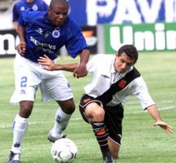 perde para Cruzeiro no Mineirão: 3 a 2 Com o resultado, o Cruzeiro subiu para 53 pontos e praticamente garantiu seu lugar fora do grupo dos que lutam contra a degola. O Vasco, que ficou com 49, ainda corre risco de cair, embora muito pequeno (precisa de cinco pontos em seis jogos). A partida teve o Vasco dominando todo o primeiro tempo (do qual saiu perdendo injustamente, por 2 a 1) e a segunda etapa equilibrada, com as equipes alternando chances. A primeira boa chegada do jogo foi do Vasco, com um minuto decorrido. Após boa troca de passes, Rodrigo Souto passou para o lateral Chiquinho que, do bico esquerdo da área, bateu cruzado. A bola foi para fora, assustando o goleiro Artur. No entanto, no primeiro lance de perigo que obteve, o Cruzeiro abriu o placar. Maldonado cobrou falta da intermediária e Edu Dracena subiu para fazer de cabeça, pulando mais alto que Henrique, do Vasco, que tentava a marcação. Mesmo perdendo, os cariocas não se abateram e a desvantagem no marcador durou pouco. Aos 11 minutos, o Vasco entrou pelo meio da defesa, tocando a bola. Rodrigo Souto recebeu na entrada da área e foi desarmado, mas a bola acabou chegando ao lateral Thiago Maciel, que bateu cruzado, do bico direito da grande área, e empatou o jogo. O jogo era melhor para o Vasco, que marcava por pressão e encurralava o Cruzeiro. Aos 21, por muito pouco Rodrigo Souto não virou a partida. Ele recebeu lançamento de Ygor e penetrou livre. O goleiro Artur saiu e foi encoberto pelo vascaíno. A bola tinha endereço certo, mas Régis salvou em cima da linha. O Vasco seguiu dominando e, aos 27, foi a vez de Chiquinho assustar Artur. O lateral-esquerdo entrou driblando a defesa mineira e, da meia-lua, bateu de pé direito. A bola subiu demais e foi para fora. Mesmo sem merecer, quem acabou fazendo o segundo gol foi o Cruzeiro. Aos 31, Martinez recebeu lançamento no lado esquerdo da área, dominou no peito e soltou a bomba na trave. No rebote, Jussiê ainda bobeou, mas a bola sobrou limpa para Maldonado, que não perdoou. Uma vez mais, o Vasco não se abateu e quase empatou dois minutos depois. Melhor jogador em campo no primeiro tempo, o lateral Chiquinho entrou na área cruzeirense driblando. Ele deixou pelo menos três adversários para trás e, pouco antes da pequena área, bateu para o gol. O goleiro Artur fez grande defesa, colocando para escanteio. Ao fim do primeiro tempo, os times foram para o vestiário com um placar injusto. Na volta, o técnico Marco Aurélio, do Cruzeiro, modificou o esquema tático de sua equipe para tentar melhorar seu setor defensivo (de 4-4-2 para 3-5-2): sacou o meia Adriano e lançou o zagueiro Marcelo Batatais. A mudança surtiu efeito no início do segundo tempo e o Cruzeiro voltou melhor. Aos cinco minutos, Tápia recebeu lançamento no lado esquerdo da área e bateu cruzado com perigo. A bola foi para fora. Aos poucos, o Vasco equilibrou e voltou a ameaçar o gol do Cruzeiro. Aos 11 minutos, Thiago Maciel acertou uma bomba de longe e quase acertou o ângulo esquerdo de Artur. A bola saiu por pouco. A resposta do Cruzeiro veio aos 14, quando Jussiê avançou pela direita, deu uma caneta em Emerson e cruzou para a área. Tápia recebeu livre, dominou e soltou a bomba. O goleiro Cássio espalmou para escanteio, em defesa espetacular. Aos 22, com o jogo equilibrado, o Cruzeiro teve um gol mal-anulado. Marco Aurélio fez boa jogada pela direita e cruzou para Jussiê, que cabeceou para o gol. A bola bateria na trave e, embaixo dos paus, Tápia empurrou para o gol. A arbitragem anulou o lance erradamente, marcando impedimento do chileno, que estava em posição legal. Porém, dois minutos mais tarde, os mineiros fizeram o terceiro. Maldonado bateu falta da esquerda. Pela posição, o normal seria um cruzamento, mas o chileno colocou a bola no ângulo, com muito efeito. O goleiro Cássio, que se adiantara para cortar o cruzamento, falhou ao não defender. O Vasco sentiu o golpe e ficou um pouco desnorteado. O time só voltou a assustar aos 36, quando Chiquinho uma vez mais entrou driblando e perdeu o gol quando já estava cara a cara com Artur, chutando em cima do goleiro. Três minutos mais tarde, o time carioca diminuiu. Coutinho pegou uma bomba de fora da área e acertou o ângulo direito de Artur. O Vasco se mandou para a frente em busca do empate e deixou espaços para os contra-ataques. Aos 41, Tápia foi lançado e entrou sozinho. Ele tocou na saída do goleiro Cássio e acertou a trave. Dois minutos mais tarde, o Vasco teve o zagueiro Henrique expulso, por ter feito falta em Jussiê quando o cruzeirense partia em direção ao gol. Aos 46, Augusto Recife e Silva trocaram tapas e também levaram cartão vermelho. E o jogo ficou nisso, vitória do Cruzeiro por 3 a 2. GALERIA: