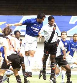 FICHA TÉCNICA: CRUZEIRO 3 X 2 VASCO Data/Hora: 07/11/2004, às 16h (horário de Brasília) Estádio: Mineirão, Belo Horizonte (MG) Árbitro: Romildo Correia (SP) Gols: Edu Dracena, 4'/1ºT (CRU); Thiago Maciel, 11'/1ºT (VAS); Maldonado, 31'/1ºT (CRU); Maldonado, 24'/2ºT (CRU) e Coutinho, 39'/2ºT (VAS). Cartões Amarelos: Marco Aurélio, Augusto Recife, Jussiê, Maldonado (CRU), Emerson, Rodrigo Souto, Ygor e Gomes (VAS). Cartões Vermelhos: Augusto Recife (CRU), Henrique e Silva (VAS). Público e Renda: 3.517 pagantes / R$ 39.740,00 CRUZEIRO: Artur; Marco Aurélio, Edu Dracena, Régis e Wágner (Marcinho, 28'/2ºT); Augusto Recife, Maldonado, Martinez (Geovani, 17'/2ºT) e Adriano (Marcelo Batatais, no intervalo); Jussiê e Tápia. Técnico: Marco Aurélio. VASCO: Cássio; Thiago Maciel, Henrique, Gomes e Chiquinho; Ygor, Coutinho, Emerson (Gustavo, 19'/2ºT) e Rodrigo Souto (Silva, 24'/2ºT); Rubens (Júnior, 40'/2ºT) e André Lima. Técnico: Joel Santana. Fonte: Lancenet (texto e ficha), Superesportes (fotos) |
