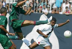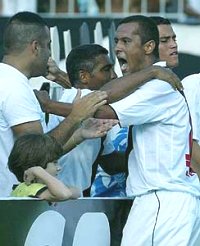 04' - No rebote, Allan Delon (VAS) cruza da direita e Romário (VAS), impedido, marca de cabeça. O árbitro anula o gol.