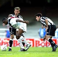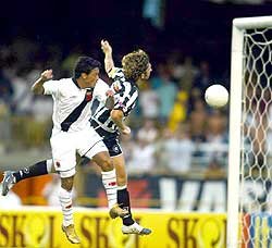 chutou forte. A bola acabou desviando na zaga e o arqueiro vascaíno