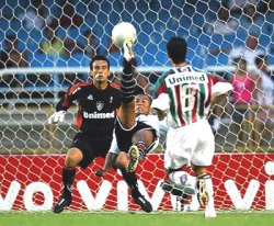escanteio. A jogada do atacante tricolor deu a idéia de que o Flu