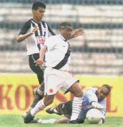 ao seu estilo dentro da área, mas foi travado pelo zagueiro na hora
