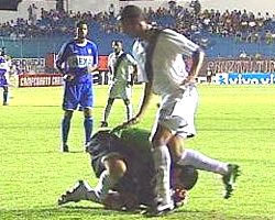 e o arqueiro Fabiano fez boa defesa, espalmando para o lado. Aos